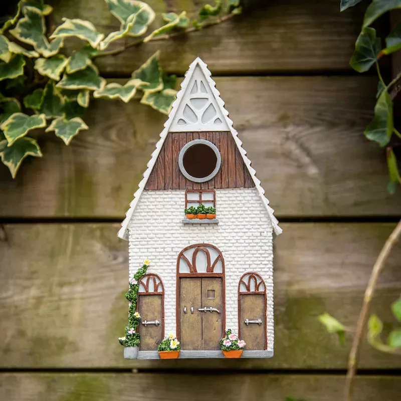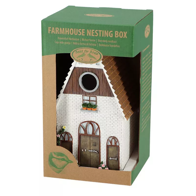 Farmház kinézetű, dekoratív madárház. A műgyantából készült, skandináv ill. német stílusú házikó ellenáll az időjárás viszontagságainak, szélnek és esőnek. Kiváló menedéket és fészkelési helyet biztosít a cinkéknek a kertben vagy az eresz alatt. A 27 mm átmérőjű nyílás ideális a legtöbb cinegeféle számára, így vendégül láthatod a széncinegéket, a kormosfejű cinegéket, a kékcinegéket és a búbos cinegéket is. A ferde tető alatti kis lyukakon szabadon áramlik a levegő, ezért nem melegszik fel az odú belseje nyáron sem. A madárház alja levehető, így ha épp nincs lakója a madárháznak, egyszerűen tisztíthatod. Az előfúrt hátoldalnak köszönhetően pillanatok alatt rögzítheted egy fára vagy akár a házfalra is. Teremts otthonos hangulatot szárnyas barátaidnak is ezzel a dekoratív kiegészítővel, mely garantáltan a kert dísze lesz!